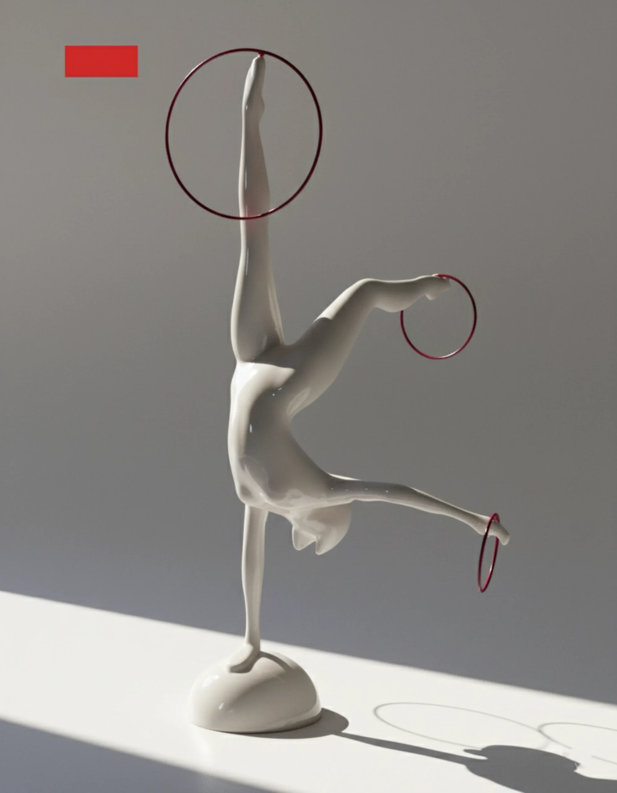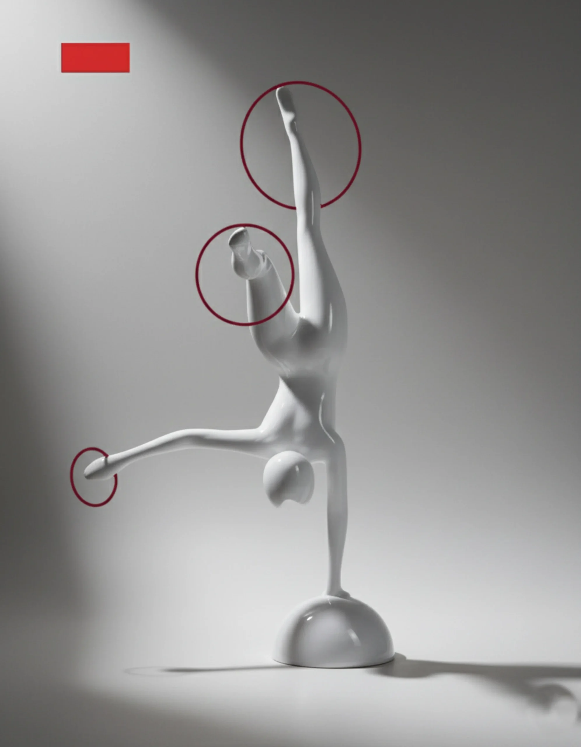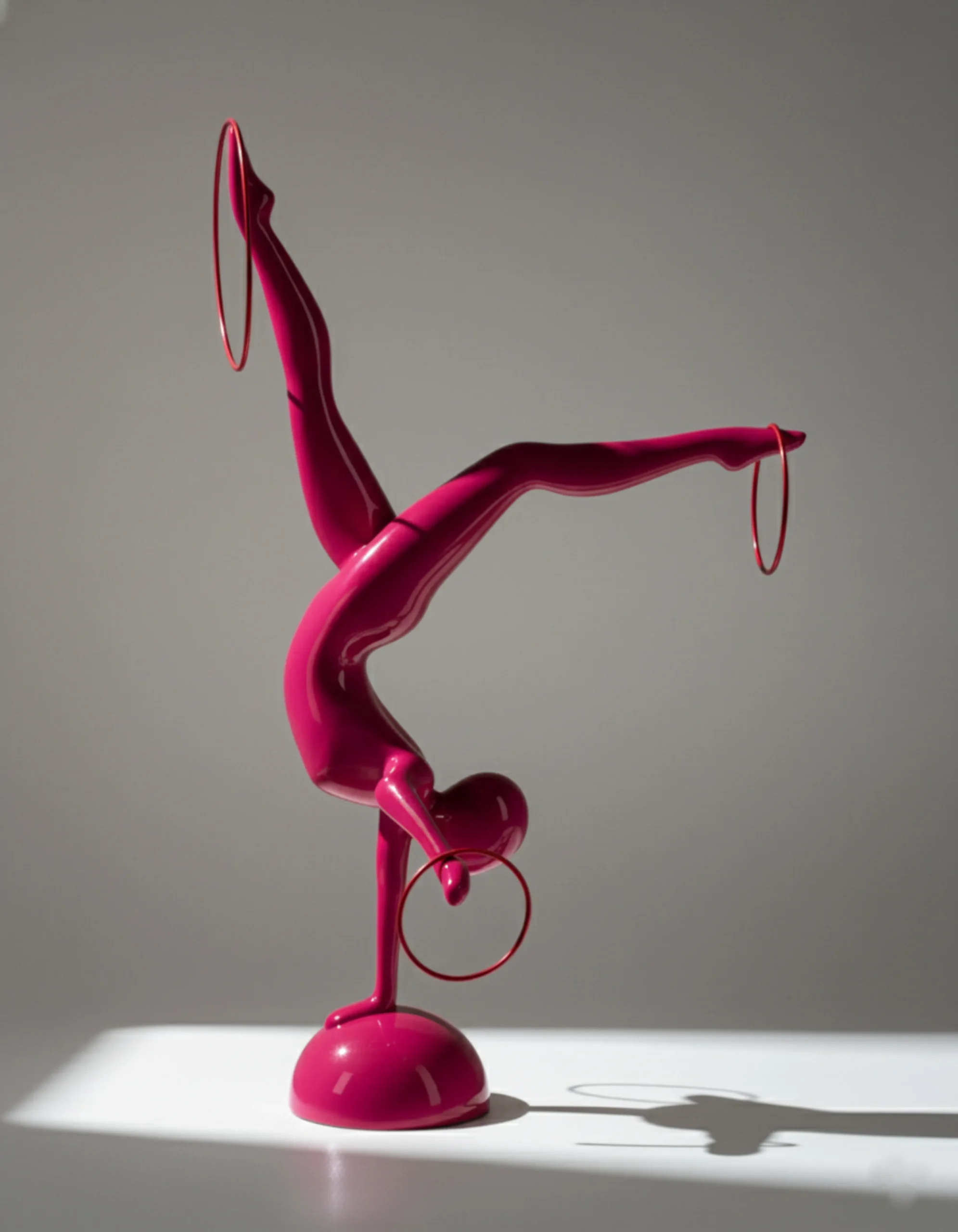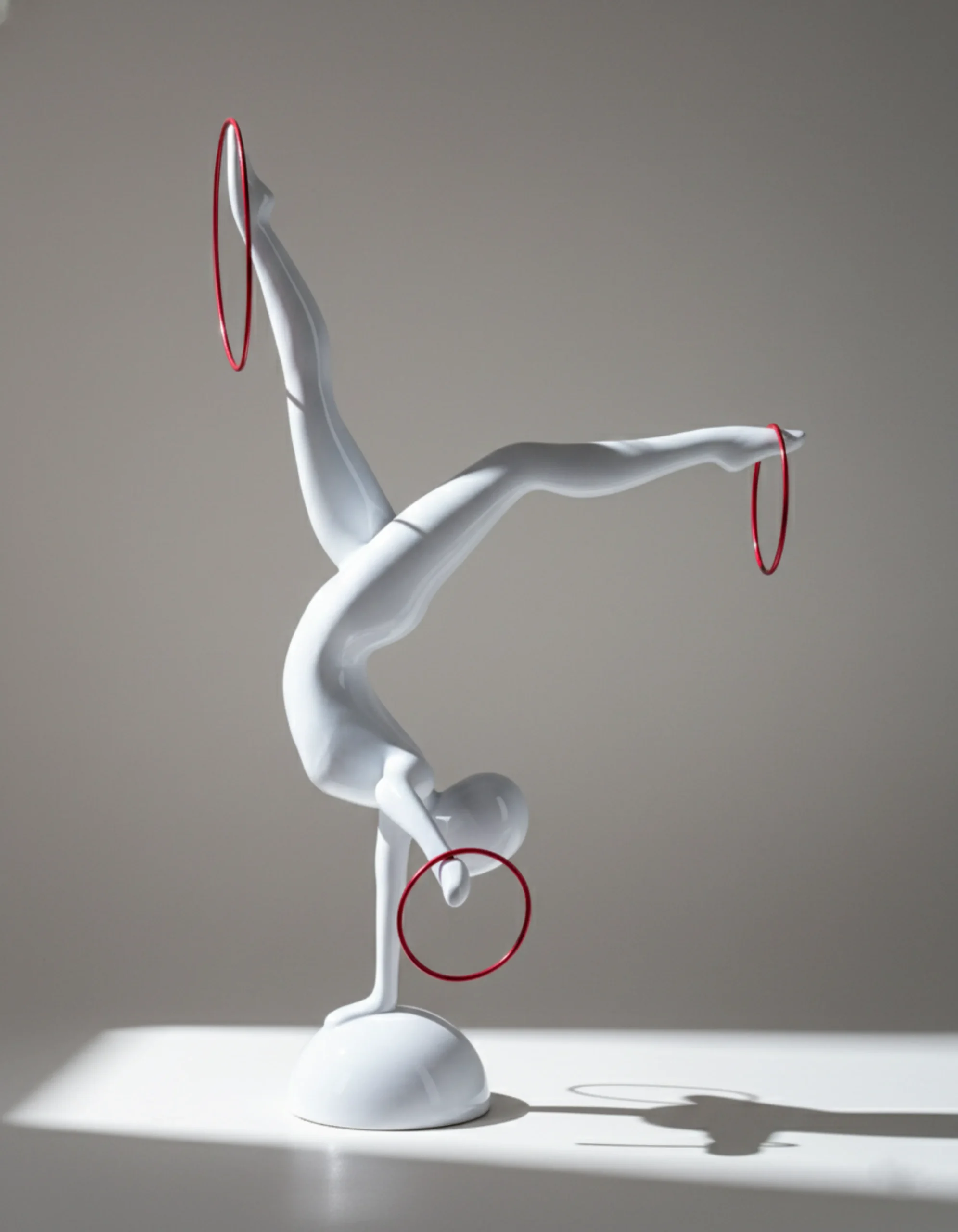 Hand-sculpted fiberglass body with a high-gloss ivory finish, encircled by brushed steel rings.